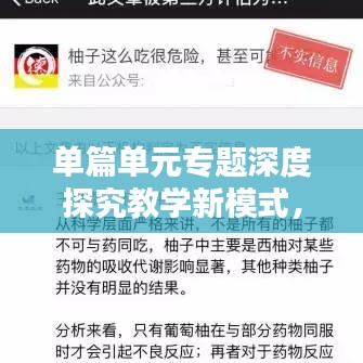 單篇單元專題深度探究教學(xué)新模式,創(chuàng)新教學(xué)方法,提升教育質(zhì)量